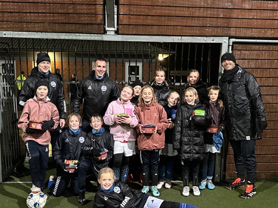 Vi er ca. 20 søde fodboldpiger fra begge skoler i byen, og fra flere forskellige klasser. Der er plads til flere og der er plads til alle.