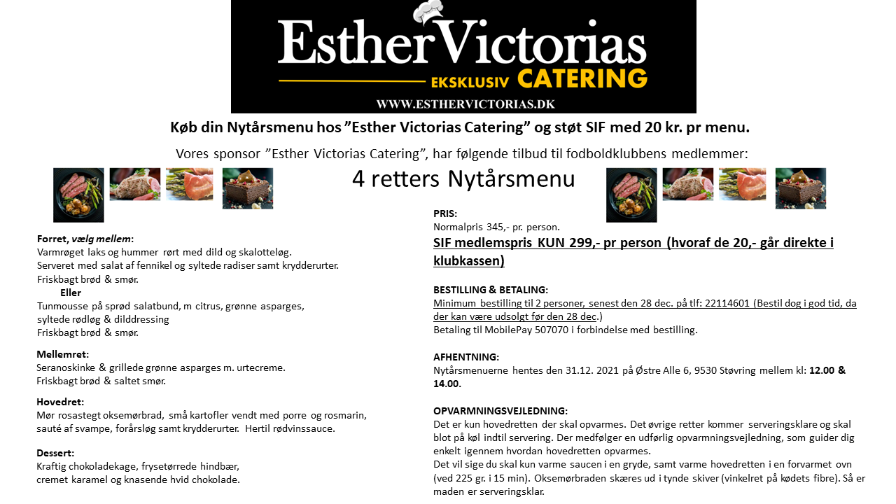 Vores sponsor ”Esther Victorias Catering”, har følgende tilbud til fodboldklubbens medlemmer!