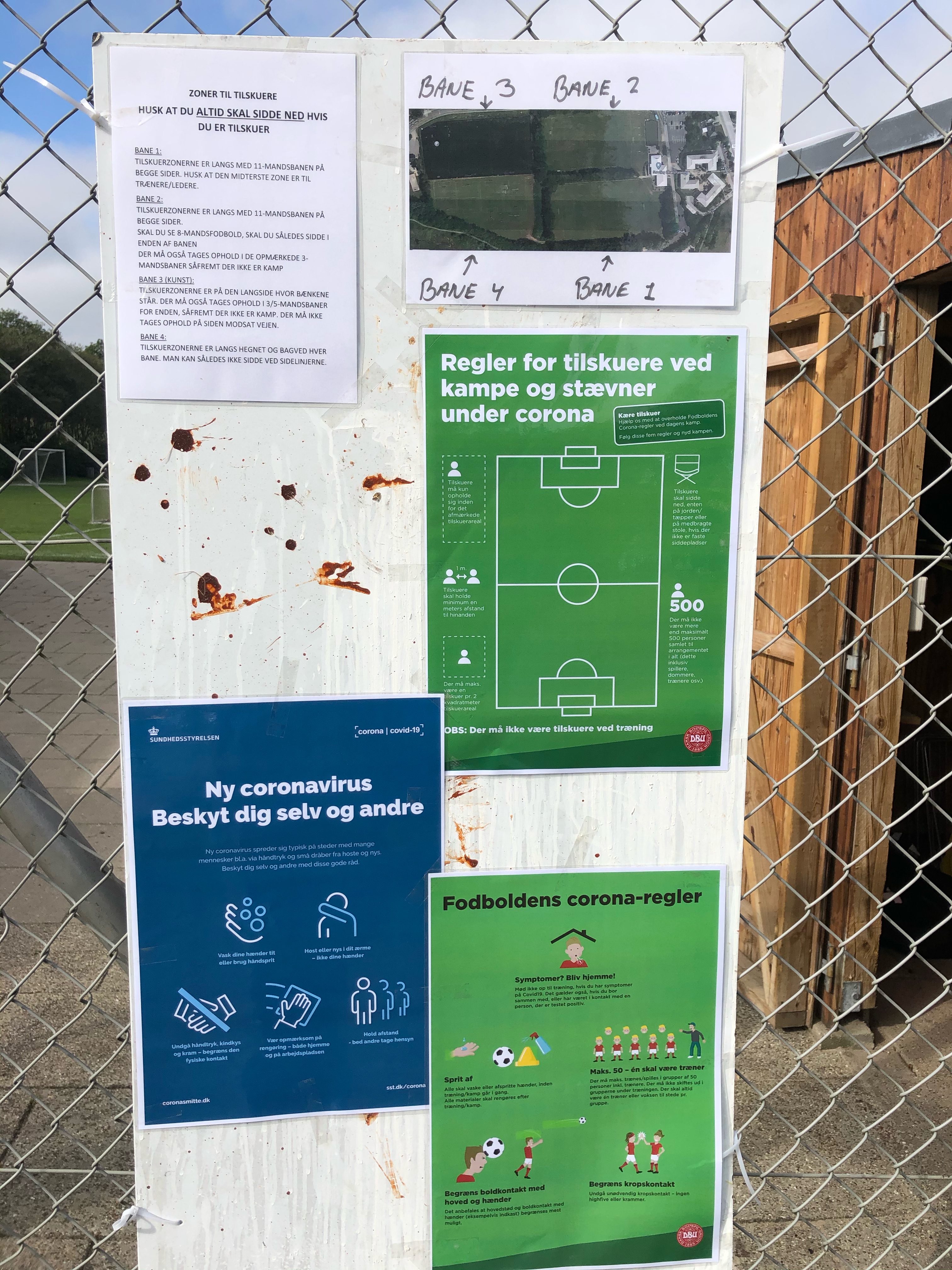Ved de mest brugte indgange er der hængt skilte op med retningslinjer, som vi indtrængende beder alle om at følge.
