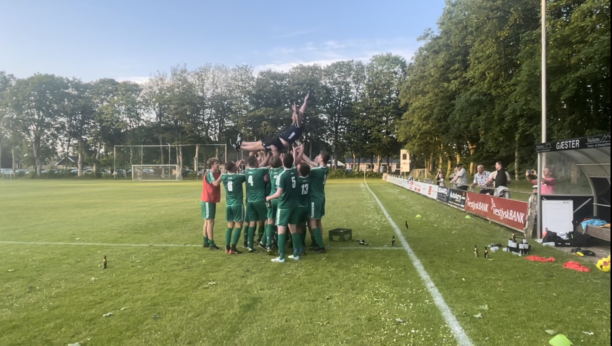 Lidt spænding kom der dog 5 minutter senere da Hornum fik reduceret til 3-1, men bare to minutter senere var spændingen punkteret da Ulrik Kjærgaard igen var på pletten og gjorde det til slutcifrene 4-1, og cheftræner Uffe Agerbo kunne herefter få den obligatoriske, og velfortjente lufttur, som symbol på at oprykningen er i hus.
