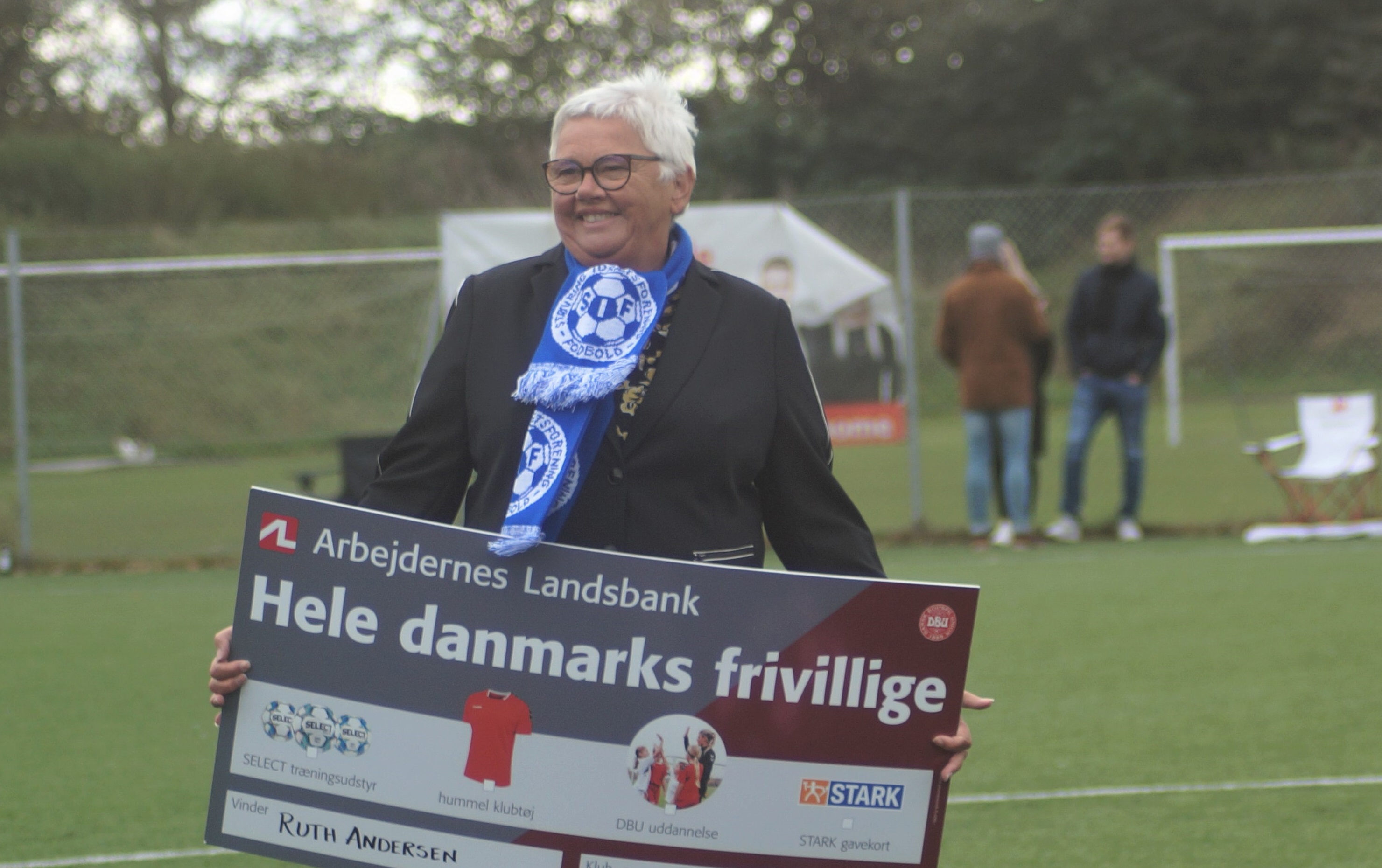 Ruth Andersen der i over 30 år har ageret frivilligt i SIF, modtog lørdag det synlige bevis på at hun nu er hædret som "Hele Danmarks Frivillige", da hun på klubbens vegne modtog en check på kr. 15.000,-