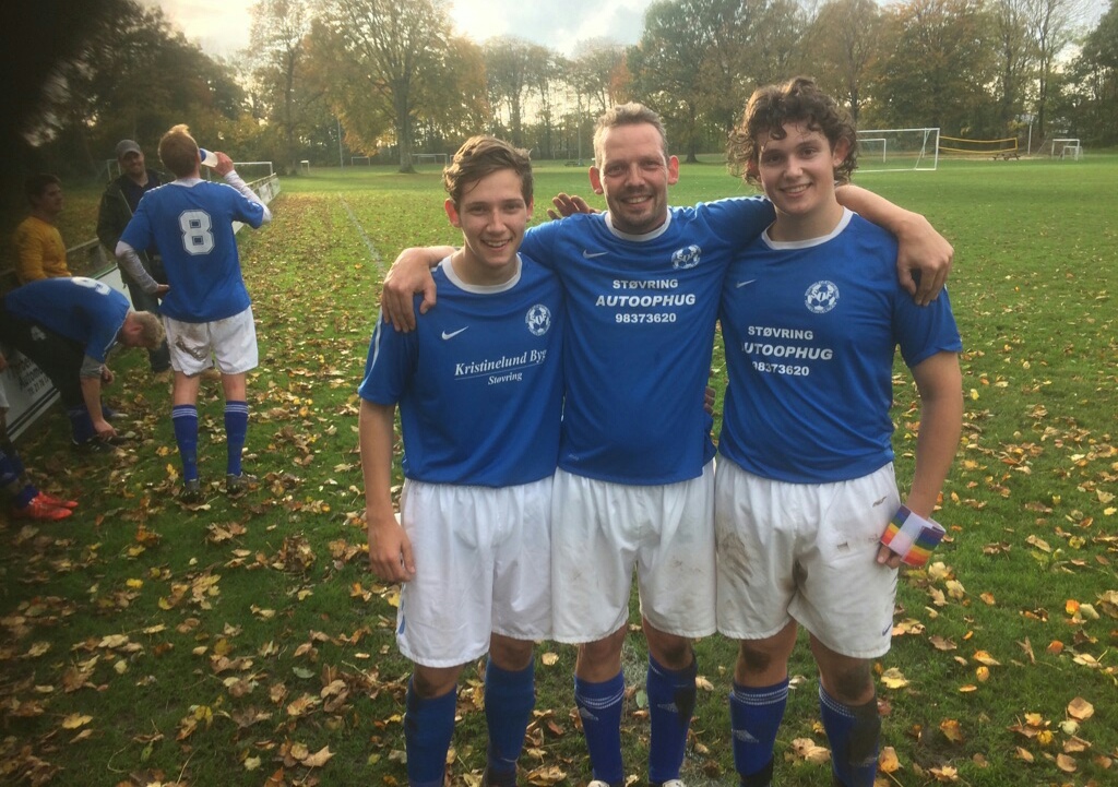 Bloch-Banden på banen - fra venstre Jeppe, farmand Brian og Mark Bloch Jensen. De var alle tre med på Serie 4-holdet søndag i 3-3-kampen ude mod Hornum IF, og Brian udlignede til 3-3 fire minutter før tid. Fotos: Kim Lyngberg