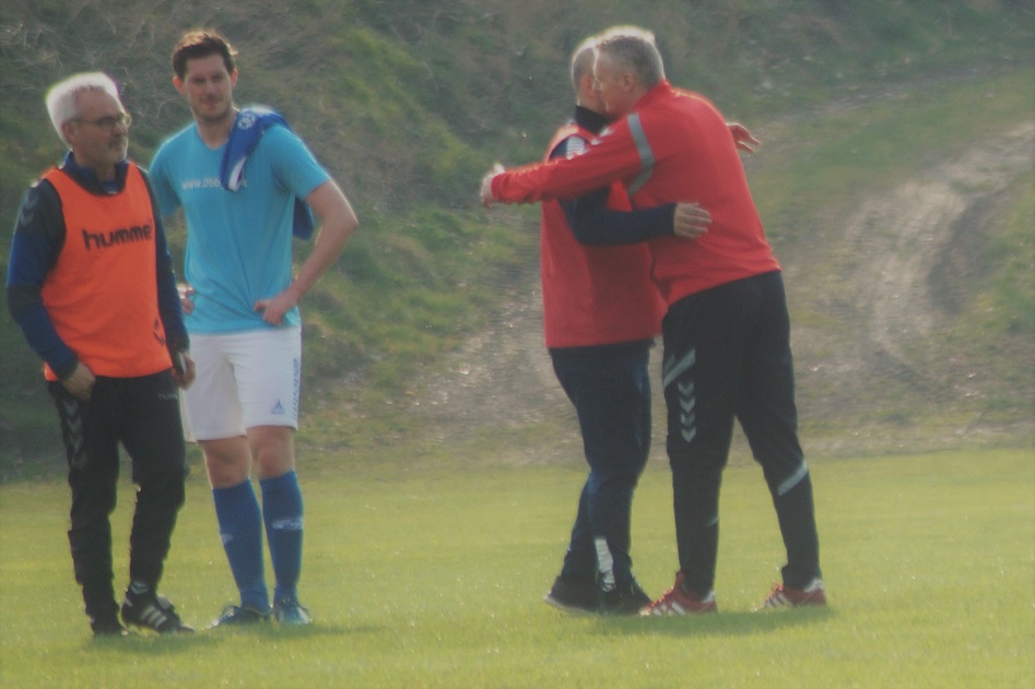 Allan Christensen (th.) og Chang tog det første stik med 4-1 i Støvring i forårets første indbyrdes kamp. Tuncay Demirel, der her siger tak for kampen, håber og tror på revanche i aften (fredag 24/5), når SIF møder Chang på udebane. Arkivfoto: Hanne Andersen