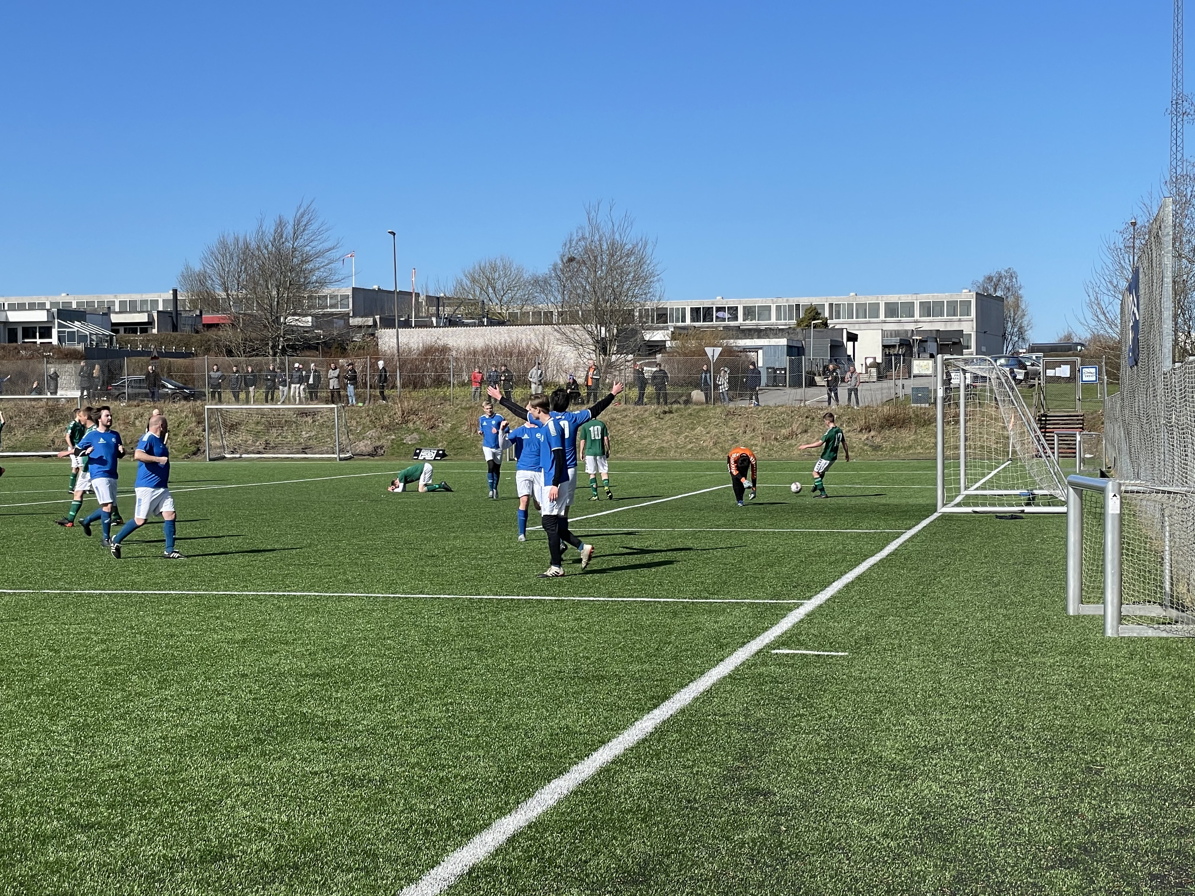 Omklædning er ligeledes ikke muligt for holdene, så det er uvante vilkår, men det overskygges af glæden over at der overhovedet kan spilles fodbold i disse tider.