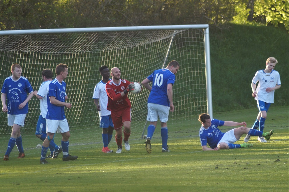 En situation fra 1-2-kampen i Støvring mellem Serie 2-holdet og Farsø/Ullits IK. Lørdag gælder det den omvendte kamp i Farsø i næstsidste spillerunde, og begge hold har voldsomt behov for en sejr i hver sin ende af tabellen. Arkivfoto