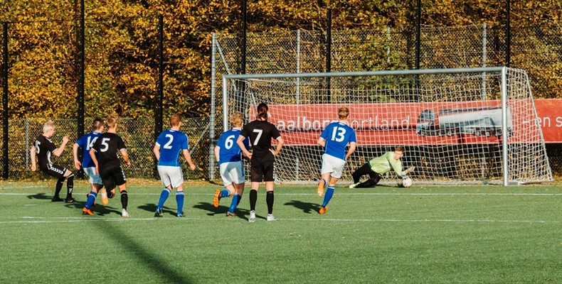 Mikkel Blad Krogh - her i aktion i en af efterårets kampe i fjor - er tilbage i målet for JS-holdet, der får besøg af topholdet FfI lørdag kl. 15.00 Arkivfoto
