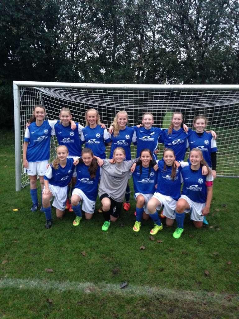 U 15-piger Mesterrække efter den flotte sejr på 5-0 hjemme over Arden IF. Foto: U 15-piger