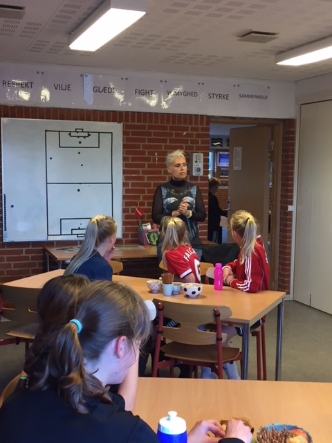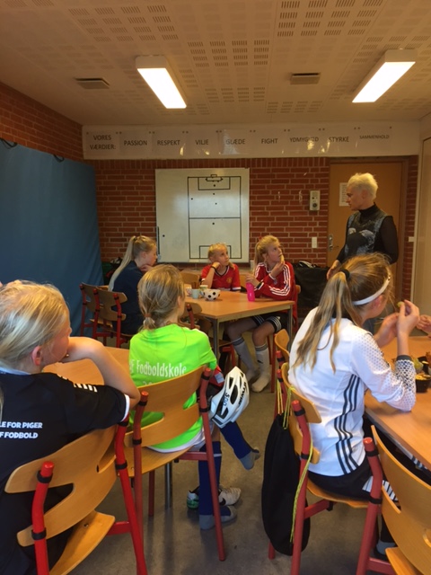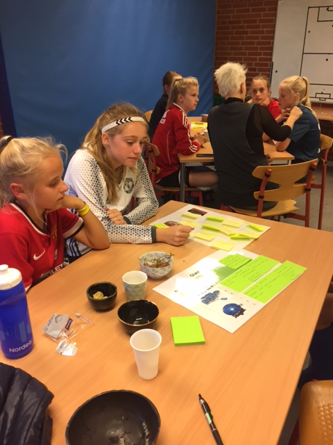 Pigerne arbejdede i grupper og satte ord på ovenstående begreber, hvilket udmøntede sig i nogle fine handlinger samt mål for det kommende fodboldår.