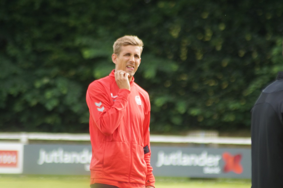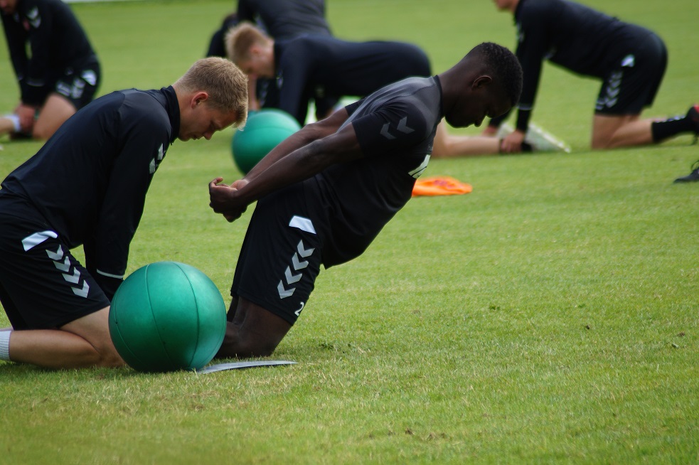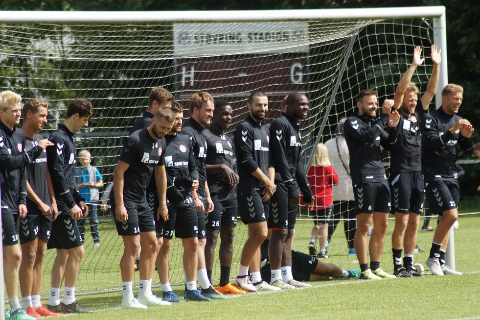 AaB-spillere på rad og række i målet ned mod klubhuset i Støvring. Foto: Hanne Andersen