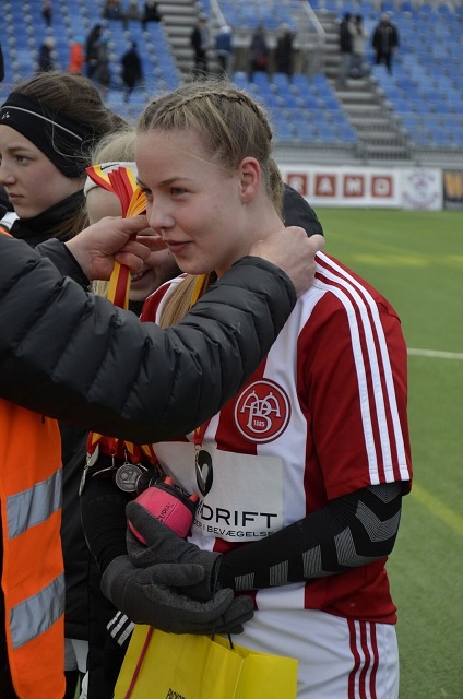 Her blev Laura Schmidt (foto herover) kåret som bedste AaB-spiller i kamp 2. Om lørdagen i kamp var det så Sofie Skree Qvists tur til at blive kåret til kampens AaB-profil i de to kampe, pigerne spillede.