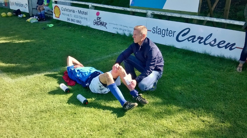 Derfor var viceanfører Mads Tølbøl, Mikkel Løgsted og undertegnede (cheftræner Anders Klagenberg, red.) "bag fjendens linjer" med en lille "god bedring gave" til den uheldige Støvring-spiller, som lige var kommet tilbage fra en anden skade inden mødet med Gug.