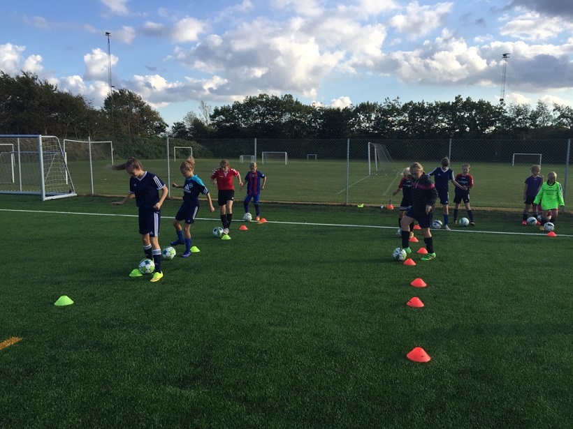SIF-pigerne har været igennem en masse forskellige ting. De har trænet indersidespark, vristspark, halvtliggende vristspark, hovedstød, tæmninger, driblinger, finter, modtagelse af bolden og pasninger. Så man har været godt rundt omkring i fodboldens ABC.