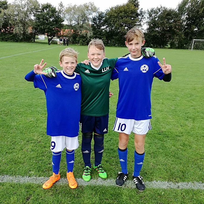 Malthe Frederiksen (t.v.) scorede hattrick mod AaB, Lasse Hvilsted holdt SIF-buret rent, og Malthe Krogh (t.h.) scorede en gang og havde to målgivende pasninger. Foto: U 14-drenge