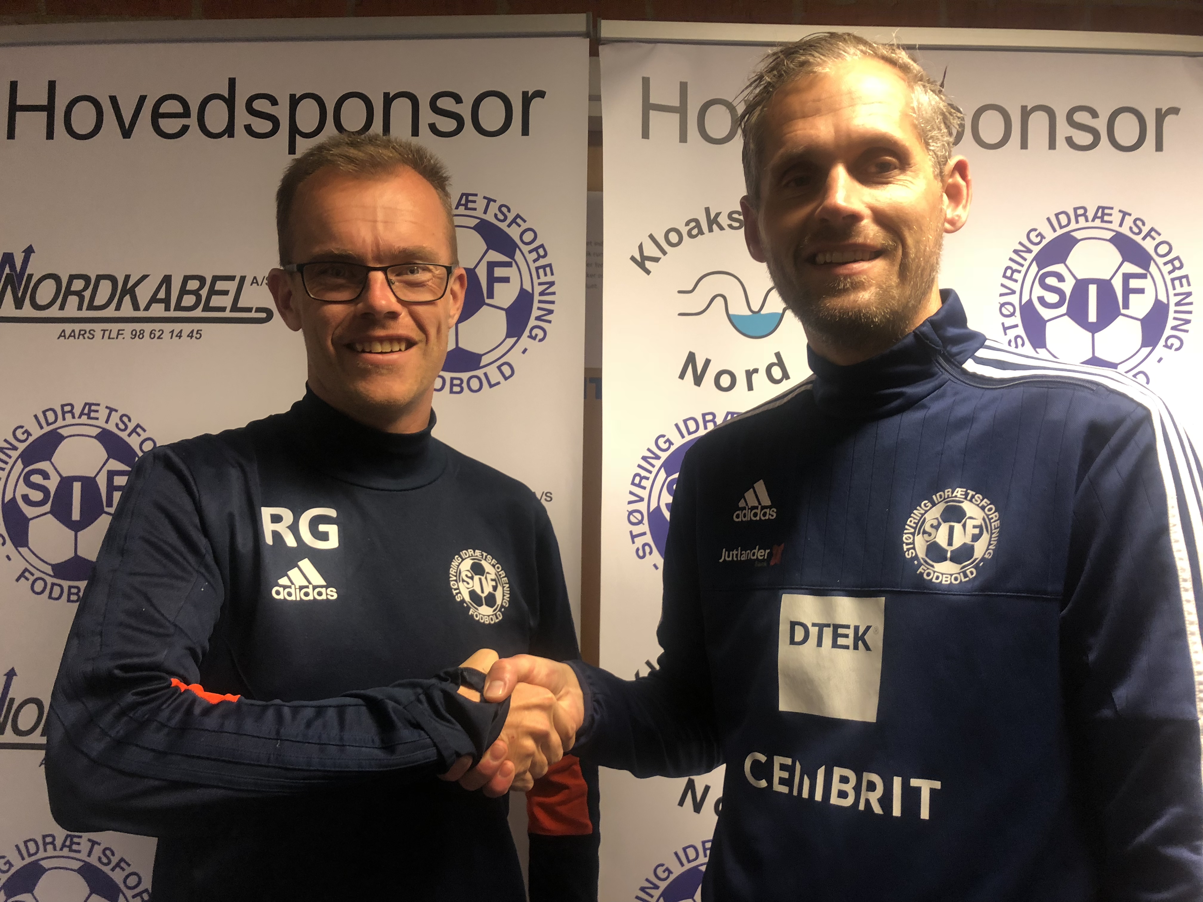 Sportschef Rasmus Gissel og Jakob Jensen, der fortsætter som cheftræner for drengene i årgang 2004.