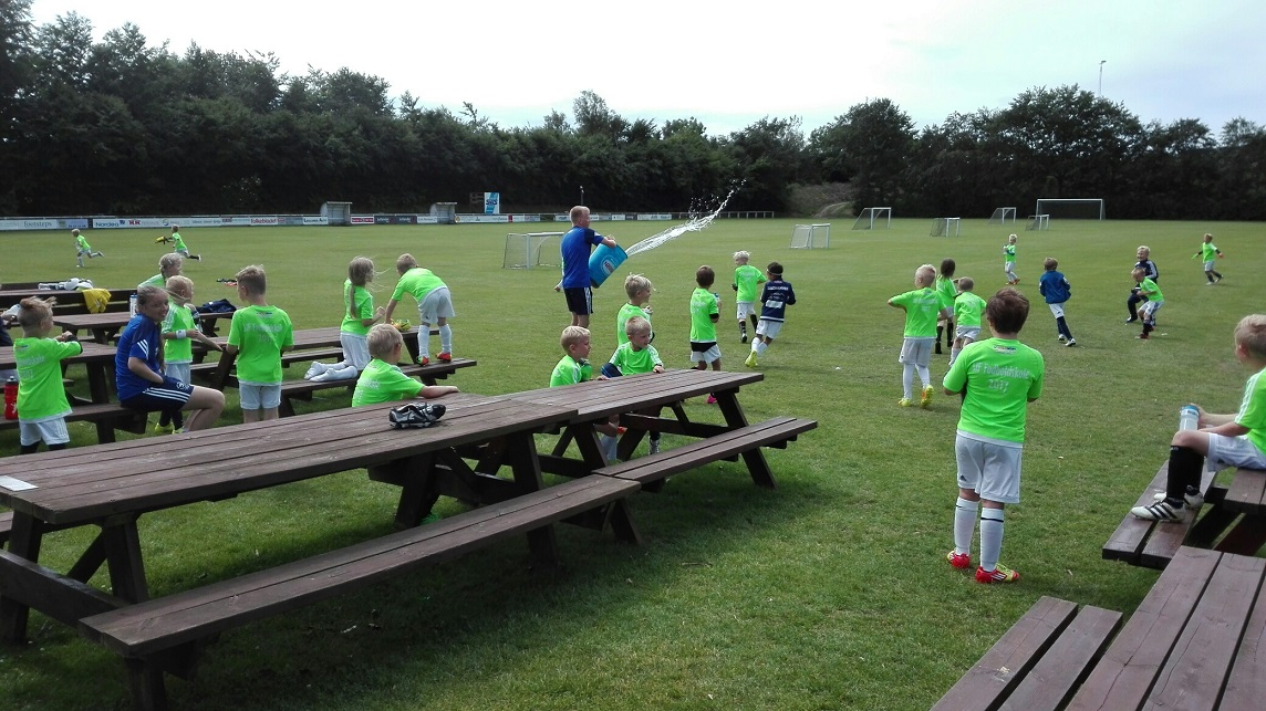 Vand var der til alligevel masser af til allersidst for deltagerne på Mini-skolen, idet der vanen tro blev sluttet af med en vandkamp, hvor især trænerne kunne se frem til at blive gennemblødte - og det blev de....