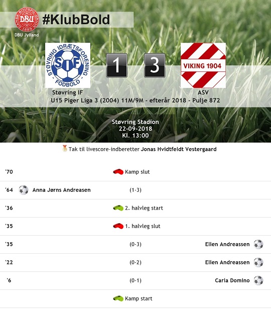 Det var U 15 -pige Liga 3-puljens nr. to og tre, der bragede sammen i lørdags (22/9), da ASV gæstede kunstgræsbanen i Støvring, og gæsterne slog til i første halvleg - stillingen ved pausen var 0-3.