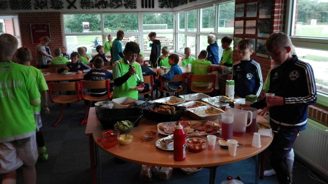 Efter en formiddag med stationstræning og forskellige øvelser blev der efter en solid frokost ved middagstid, og det skal i den sammenhæng her nævnes, at frugtordningen gennem hele ugen har været sponsoreret af Rema 1000 i Støvring, sat fokus på en straffesparkskonkurrence som første punkt på dagsordenen over middag.