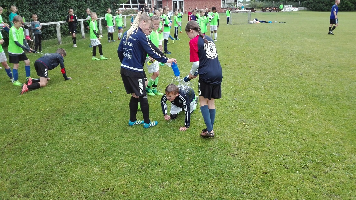 Vand fik både de 96 piger og drenge på Maxi-skolen og trænergruppen plus lederen af SIF Fodboldskolen 2017, Brian Bloch, dog også masser af til sidst fredag ved 14-tiden.