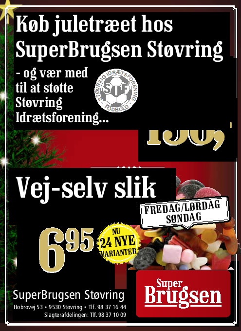 SIF Fodbold sælger i weekenden - fredag 18/12, lørdag 19/12 og søndag 20/12 - juletræer på P-pladsen ved SuperBrugsen i Støvring. Støt din fodboldklub ved at købe træet til den forestående højtid her. Læs mere her...
