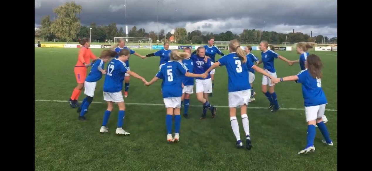 U 14 Liga 3-pigerne slog søndag 29/9 Skjold Sæby 5-2 på udebane efter en rigtig stærk indsats. Foto: U 14-piger