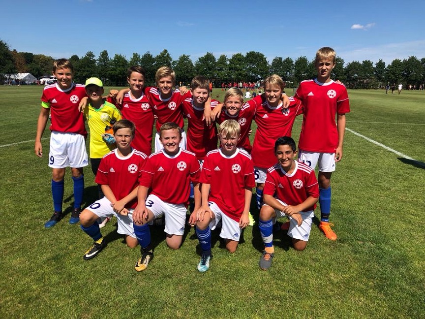 U 15-drengene efter 5-0-sejren over norske Vardeneset BK på førstedagen af Vildbjerg Cup 2018. Foto: U 15-drenge