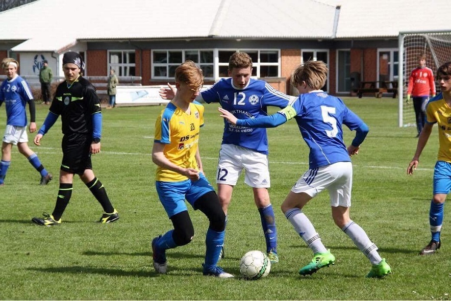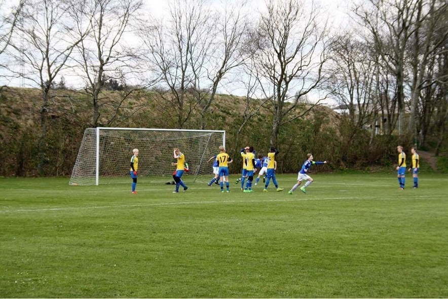 Jubel efter en af topscorer Jeppe Foldens to scoringer i 2-2-opgøret hjemme mod Hobro IK. Foto: U 15-drenge