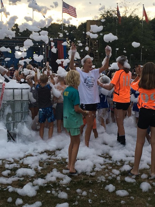 Fredagen bød også blandt mange andre ting på det såkaldte skumparty i Vildbjerg, og her havde en masse af SIF-spillerne også kræfter i overskud til at tage den i løjerne.
