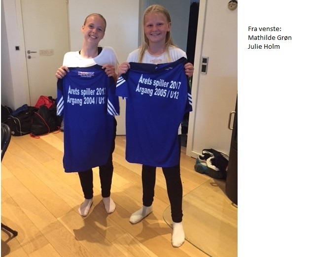 Fra U 12 er det en spiller, der startede forsigtigt ud i efteråret. Jeg tror lige, hun skulle se de nye piger og trænere an. Her i foråret har hun flyttet sig helt enormt og har udviklet et brag af et skud. Træder mere og mere i karakter på banen, og ikke mindst er hun altid lydhør og topmotiveret til træning. Udviklingen blev for alvor skudt i gang til JM med turneringens hurtigste hattrick! Årets spiller U 12-spiller er Julie Holm!