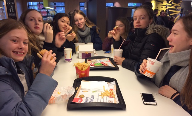 Og mens vi havde mindre resultatmæssig succes på banen, kandiderede vi klart til pokalen for mest sociale og underholdende hold lørdag aften. Det var i hvert fald ingen på skolen, der var i tvivl om, hvem Støvring-pigerne var.