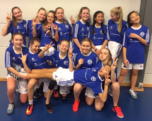 En rigtig god afslutning på en lang dag med masser af god fodbold får nu en efterfølger i form af JM-finalestævne i U 14-A-rækken i første weekend i marts i Fredericia. Godt gået af SIF-pigerne, der på billedet herover ses sammen med NM-guldvinderne fra Aalborg KFUM.