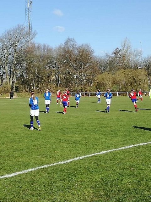 Der var ikke spillet mange sekunder, før LKB bankede på i vores defensiv, og det var kun på grund af et godt overblik af Skov i målet, at de ikke fik deres første scoring, så vi åndede lettet op. De første 15 minutter blev et stort løb imod vores defensiv, og det var tydeligt, at nogle af pigerne ikke befandt sig godt på de tildelte pladser. Det var derfor en lettelse at se Marie bryde igennem og finde Randrup i feltet, som desværre missede afslutningen - hvor ville et mål have lunet her. Til gengæld fik vi et par minutter efter en scoring imod os, fordi der blev taget en kollektiv "morfar" over hele linjen, og en LKB-spiller kunne ubesværet score til 0-1.