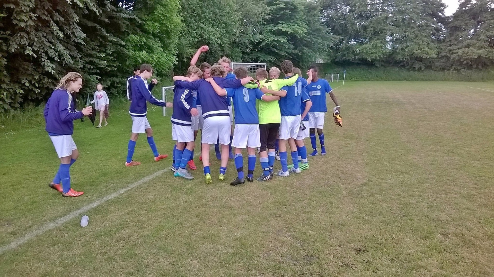 Niclas Plougmann øgede til 3-2, Rasmus Brendborg scorede til 4-2, og så stod Niclas Plougmann også for scoringen til 5-2. Efter slutfløjtet knaldede champagnepropperne på to flasker med den sprudlende væske, og U 17-gutterne kunne gjalde en sang i rundkreds.